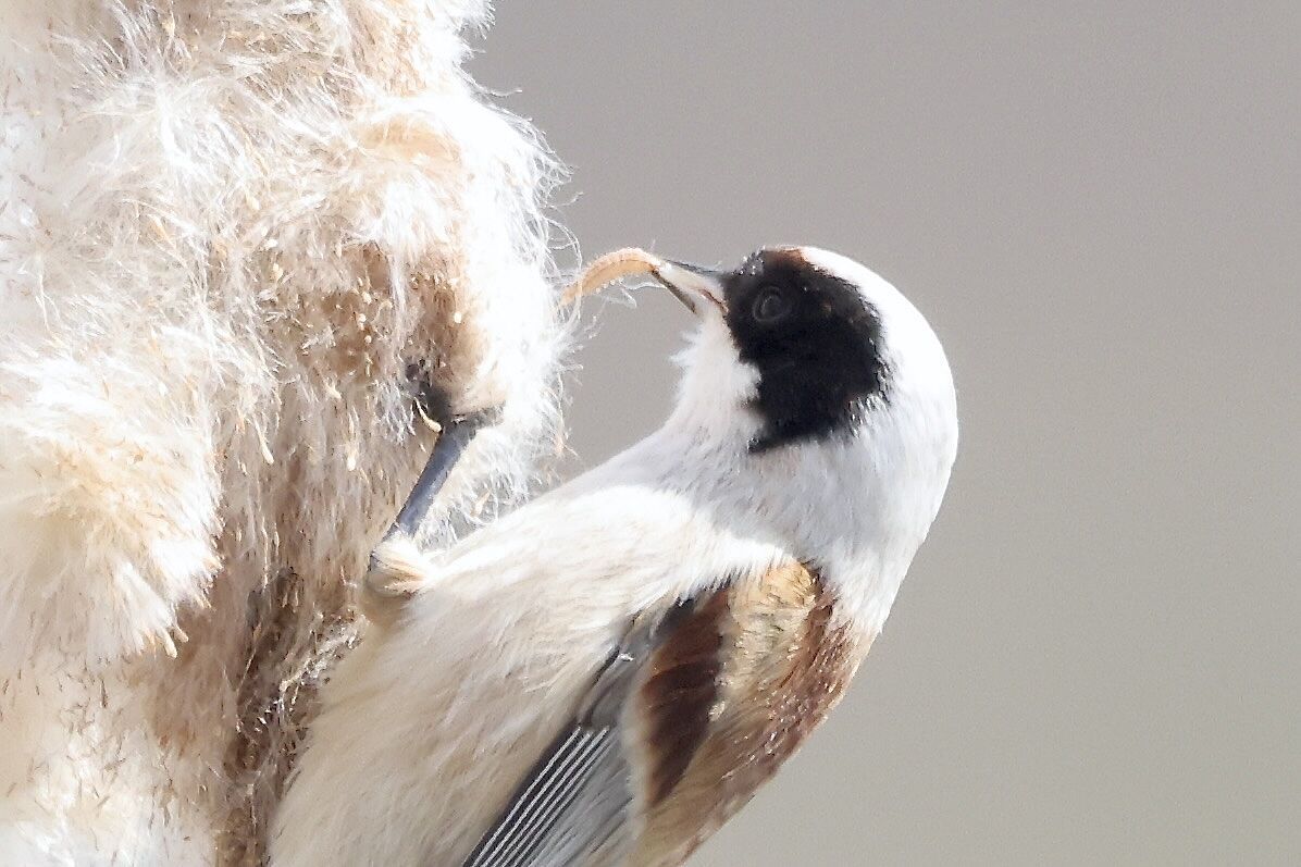 Gestern waren drei Beutelmeisen beim Bibersee und ich konnte einige Fotos von ihnen machen. Sie haben die reifen Rohrkolben auf der Suche nach kleinen Raupen „zerpflückt“. Was ich beim Schreiben des Schmetterlingbuch schon vermutet habe, dass Beutel- sowie auch die Bartmeisen, die man ja oft auf Bildern an den besagten Rohrkolben sitzen sieht, kaum an den Samen interessiert sind, sondern viel mehr an die darin enthaltenen Räupchen. Diese gehören zu einem Kleinschmetterling aus der Familie der Prachtfalter (Cosmopterigidae) und hören auf den Namen Limnaecia phragmitella. Auch wenn sie nicht die Größten sind, können in einem dieser Kolben bis zu 40 Stk vorhanden sein - es lohnt sich also danach zu suchen. (Oskar Jungklaus).