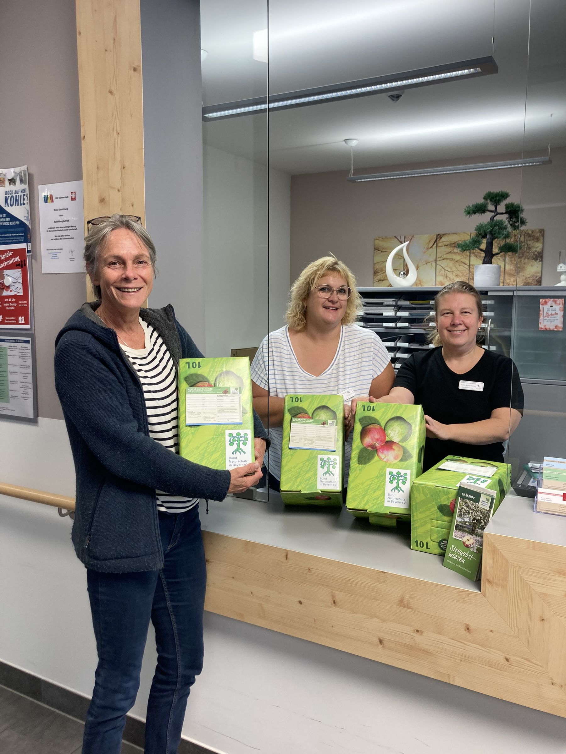 Von unseren biozertifizierten BN-Streuobstbäumen haben wir Äpfel mit vielen Ehrenamtlichen aufgesammelt. Dann haben wir lecker Apfelsaft in 5l Kartons und 10l Kartons abfüllen lassen. Geöffnet ist der Saft mindestens 3 Monate haltbar. Dieser Saft ist für 9€ bzw. 15€ in der Geschäftsstelle zu den Öffnungszeiten (Dienstag vormittag, Mittwoch nachmittag) erhältlich.